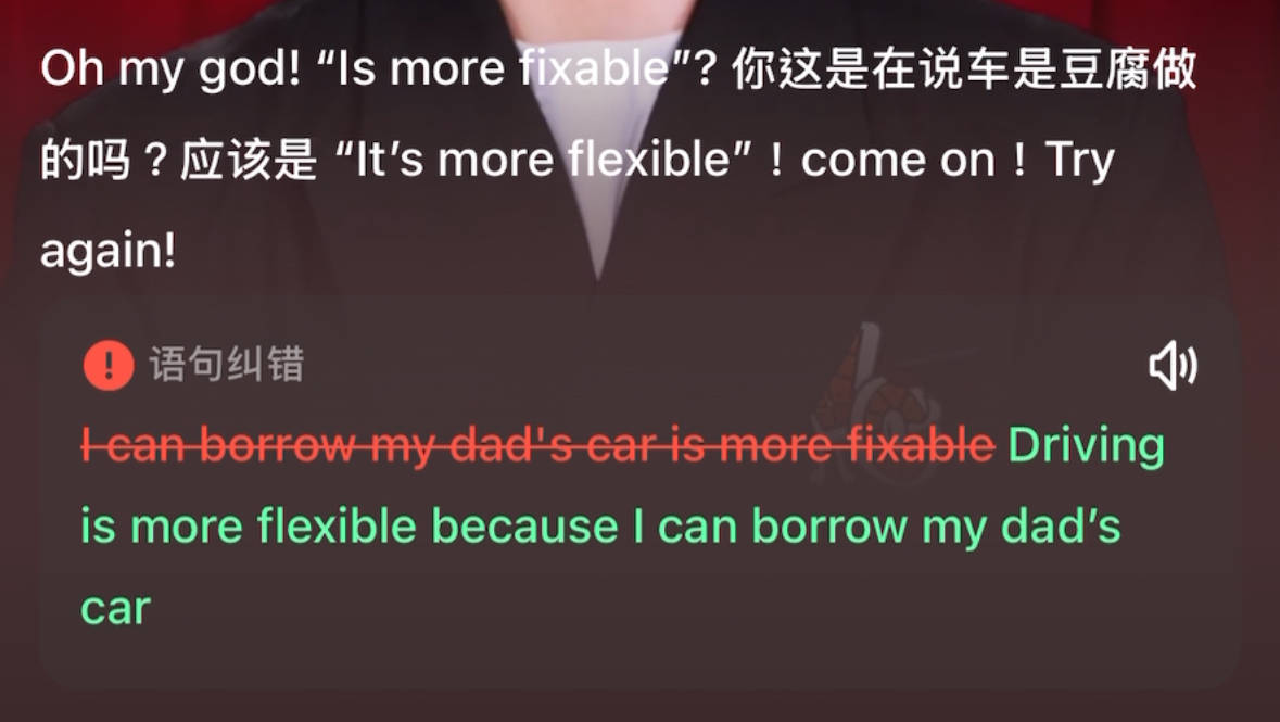 与市面上同类型的AI口语相近,AI刘旸可以提供自由对话、随时更换话题、中英互换和翻译功能。