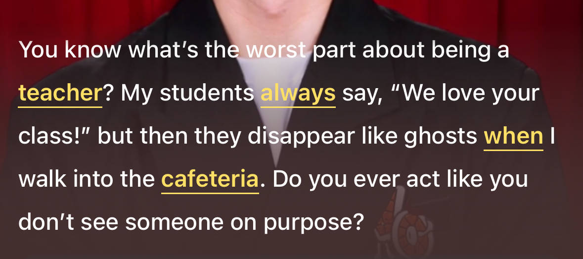 在每个笑话中会标注重点词汇和要点,AI刘旸也会在讲述的过程中引导你进行语句练习。